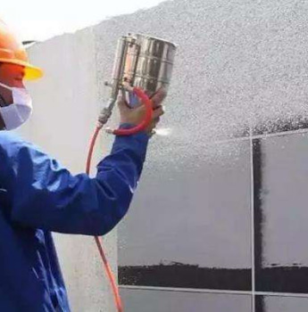 開始噴涂真石漆,噴涂厚度2-3mm,空氣壓力在6-8kg/㎡間。噴涂時,須用報紙張貼或膠帶完全隔離保護。噴涂后硬化二十四小時,噴涂面必須平 整且不露底。用量大約4-5kg/㎡。